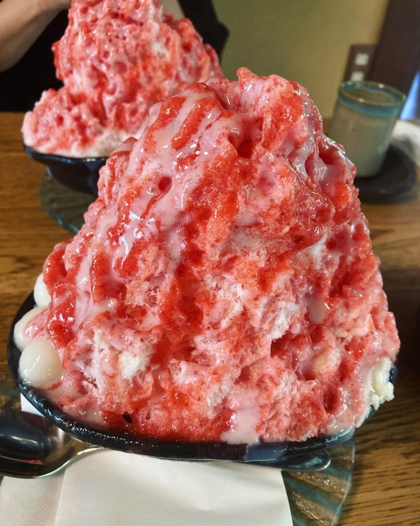 Popular flavors of kakigori include strawberry, melon, lemon, green tea (matcha), and sweet red bean (anko). It’s often topped with condensed milk for extra sweetness. Some modern variations also include fresh fruit, mochi, or other creative toppings.